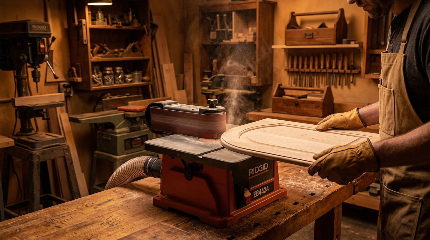 The Ridgid EB4424 combines an oscillating belt sander and a disc sander in one machine. It's not glamorous, but it handles end grain, tight curves, and edge squaring better than anything else at this price.